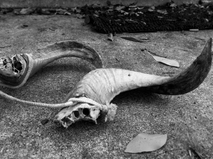 There was rolled up carpet filling the small driveway. The front doors and windows looked secure and purposefully locked. But as you walked to the side it was like looking into an empty skull. Half the wall of the garage was missing. And the back door was leaning against the wall. Guess they found a new spot after all.